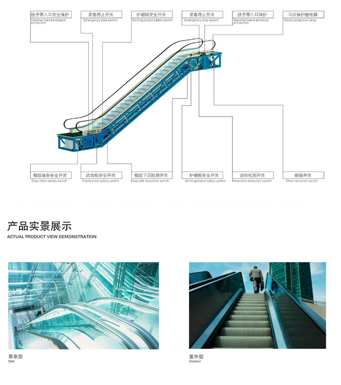港日自動(dòng)扶梯采用節(jié)能控制系統(tǒng),有效減少能源損耗;不同的傾斜角度,多種梯級(jí)寬度,巨大的輸送能力,讓它能應(yīng)用于各類公共場(chǎng)所,并滿足客戶多層次的需求,精細(xì)設(shè)計(jì)、組合、苛刻工藝,讓港日自動(dòng)扶梯具有強(qiáng)烈的現(xiàn)代氣息,讓您置身于一道精美的藝術(shù)走廊。